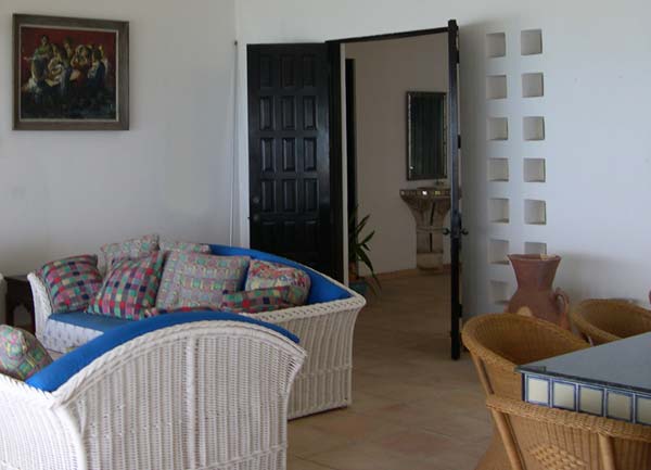 area consists of an indoor / outdoor lounge with a full bar, a gourmet kitchen , a large living / dining room, and a full outdoor kitchen. The master suite has separate his and hers bathrooms and closets. There are two one bedroom guest suites with kitchenettes, lounges, full baths, and covered terraces. The suites can be accessed by the covered terraces or by the private stairwell leading from the driveway. In addition, there is a large two bedroom suite with a full kitchen, covered terrace, outdoor bar, and a large living / dining room. This suite is accessed by the main stairwell that leads off the lobby. On the main level there is a here is a gate house and a garage. The garage leads into technical and storage areas. Below the house are the cisterns, storage, and the maids suite. The maids suite has one bedroom, kitchen, lounge, covered terraces, a separate entrance, and a stairwell to the main house. There is also a separate generator room with enough output for the entire house. |
