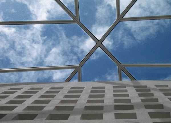 Left: The lounge and living room. Right: The lobby and skylight |